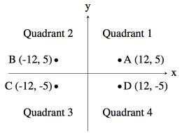 ์๋ฅผ ๋ค์ด, ์ขํ๊ฐ (12, 5)์ธ ์ A๋ x์ขํ์ y์ขํ๊ฐ ๋ชจ๋ ์์์ด๋ฏ๋ก ์ 1์ฌ๋ถ๋ฉด์ ์ํ๋ค. ์ B๋ x์ขํ๊ฐ ์์์ด๊ณ y์ขํ๊ฐ ์์์ด๋ฏ๋ก ์ 2์ฌ๋ถ๋ฉด์ ์ํ๋ค.