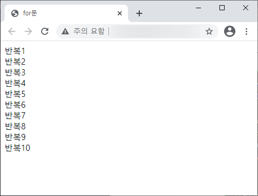 document.write("๋ฐ๋ณต" + i, "<br>");