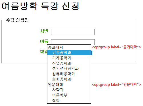 * <optgroup> ํ๊ทธ - ์ต์ ๋ผ๋ฆฌ ๋ฌถ๊ธฐ