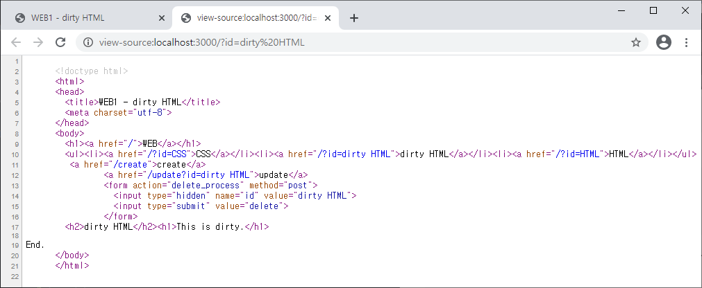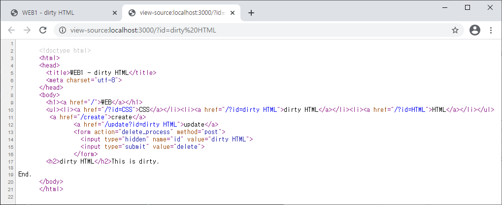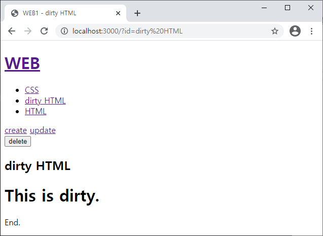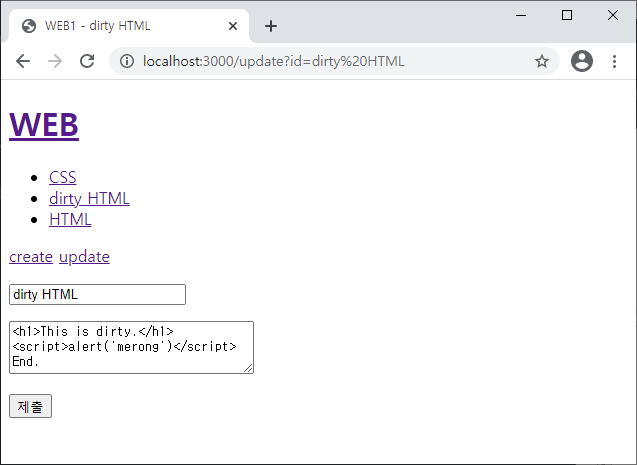 `<a href="/create">create</a> <a href="/update?id=${title}">update</a>`