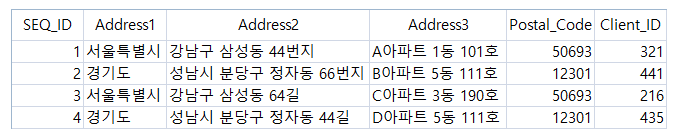 mysql> insert into Address(SEQ_ID, Address1, Client_ID) values(7, '๋๊ตฌ๊ด์ญ์', 550);