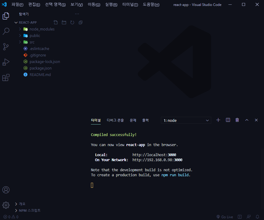 ๋ค์ ์ผ๊ณ ์ถ์๋ npm run start
