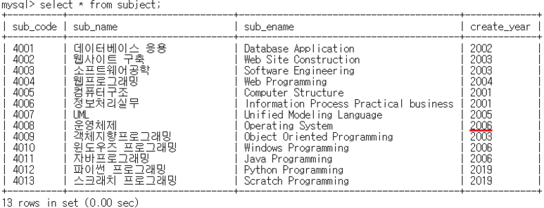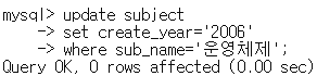 mysql> update subject set create_year = '2006' where sub_name = '์ด์์ฒด์ ';