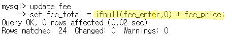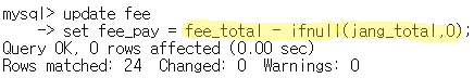 mysql> select fee_total "๋ฑ๋ก๊ธ์ก", jang_total "์ฅํ๊ธ์ก",