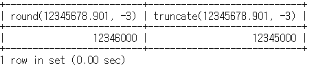 mysql> select round(12345678.901, -3), truncate(12345678.901, -3);