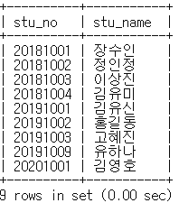 mysql> select stu_no, stu_name, substring(birthday, 1, 4) μΆμλ λ