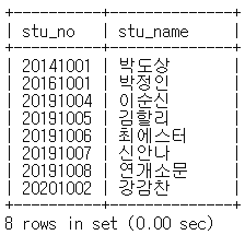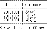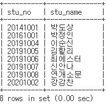 -> where stu_no in (20141001, 20161001, 20191004, 20191005,