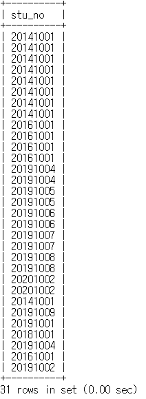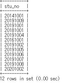 mysql> select stu_no from fee