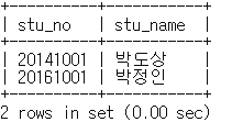 mysql> select stu_no, stu_name
