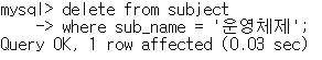 mysql> update subject