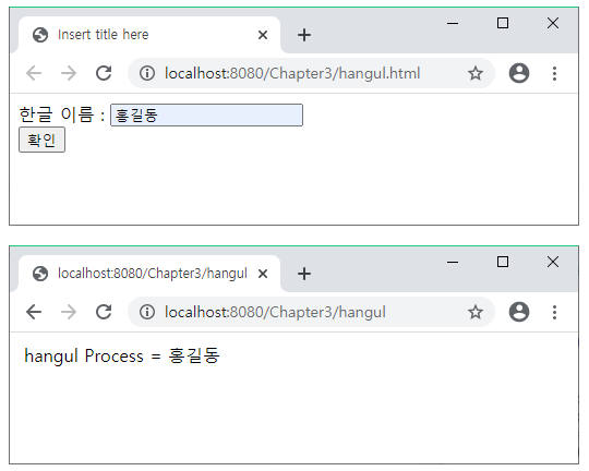 ์๋ธ๋ฆฟ ํ์ด์ง ์์ค๋ฅผ ๋ณด๋ฉด ์ ์ก๋์ด ์ค๋ ์์ฒญ์ doPost ๋ฉ์๋์์ ๊ตฌํํ๊ณ ์๋ค. ํ๊ธ ๋ฌธ์ ์ฒ๋ฆฌ๋ ํ์ง ์์๋ค.