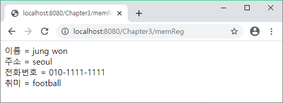 out.println("์ทจ๋ฏธ = " + hobby + "<br>");