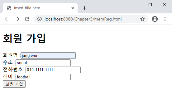 ํ๊ธ ์ด๋ฆ : <input type="text" name="name" /><br>