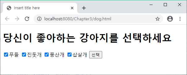 <input type="checkbox" name="dog" value="pung.jpg"/>ํ์ฐ๊ฐ