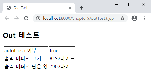 <td><%=out.getBufferSize() %>๋ฐ์ดํธ</td>