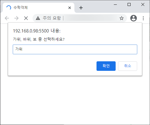 alert("๊ฒฝ๊ณ ๋ฉ์ธ์ง")