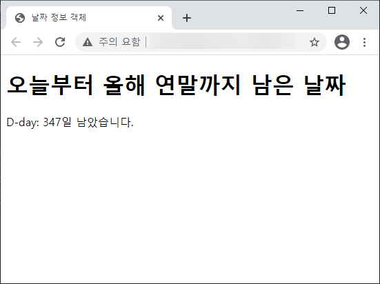 ์์ 2) ํ์ฌ ๋ ์ง๋ถํฐ ์ฐ๋ง๊น์ง ๋ฉฐ์น ์ด ๋จ์๋์ง ๋ ์ง ์ ๋ณด ๊ฐ์ฒด๋ฅผ ์ด์ฉํ์ฌ ์์๋ณด๊ธฐ