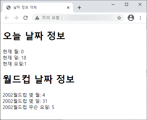 document.write("2002์๋์ปต ๋ช ์ผ: " + theDate, "<br>");