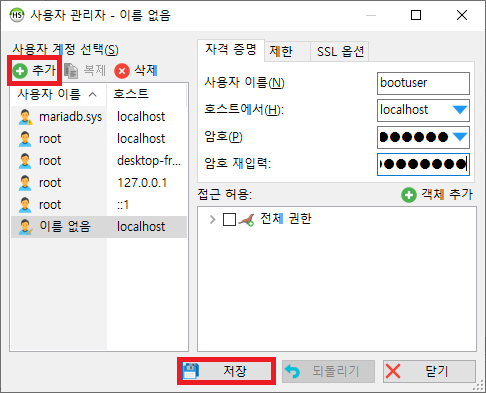 5. ์ฌ์ฉ์ ๊ณ์ ์ ์ถ๊ฐํ๊ณ ์ ๋ณด๋ฅผ ์ ๋ ฅํ ํ ์ ์ฅํ๋ค.