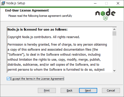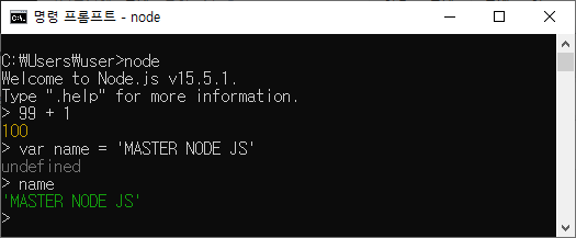 5. cmd ์์ Node.js๋ฅผ ์คํ์ํจ๋ค.