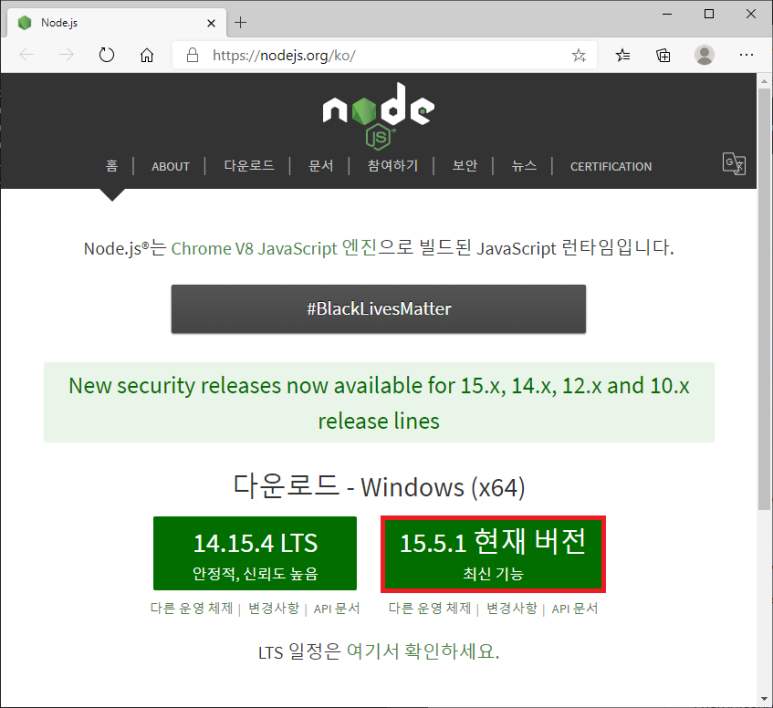 1. Node.js ์ฌ์ดํธ์ ๋ค์ด๊ฐ๊ธฐ