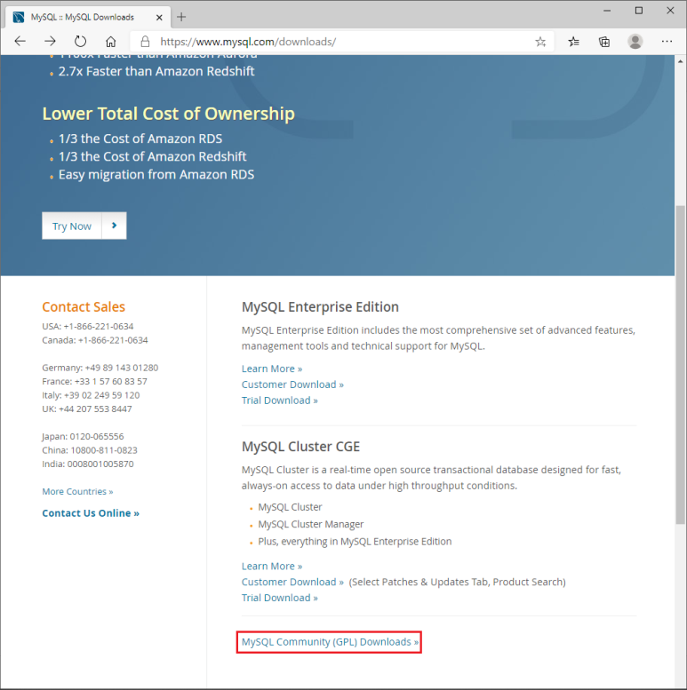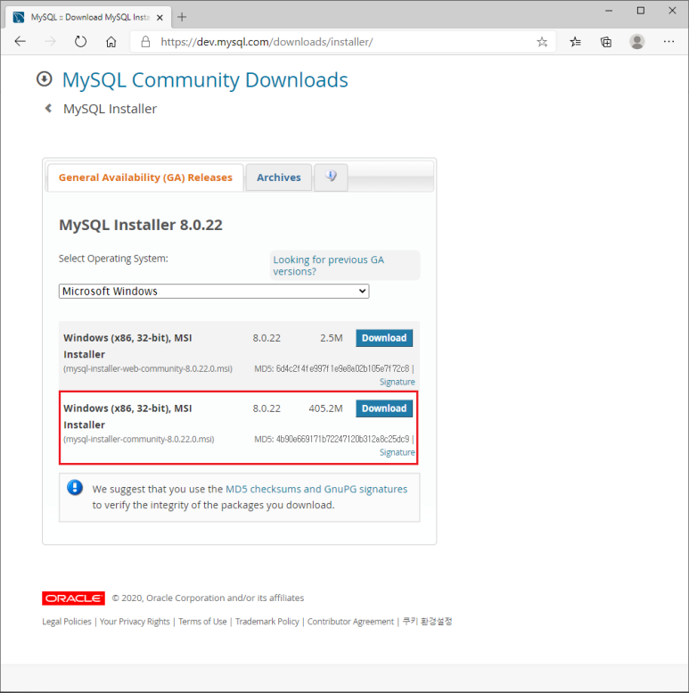 1. MySQL ํํ์ด์ง์ ๋ค์ด๊ฐ๋ค.