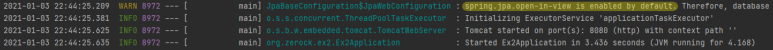 ์คํ๋ง ๋ถํธ์์ spring.jpa.open-in-view๋ฅผ true๋ก ์ค์ ํ๊ณ ์๋๋ฐ OSIV ์ธก๋ฉด์์ ๋งค์ฐ ๋ถ์ ์ ํ๋ค๊ณ ํ๋ค. ์ฑ๋ฅ์ด๋ ํ์ฅ์ฑ ์ธก๋ฉด์์ ๋ณผ ๋ false๋ก ํด์ผ ํ๋๋ฐ true๋ก ์ค์ ํด๋์ warning ๊ฒฝ๊ณ ์ฌ์ธ์ด ๋ฌ๋ค.