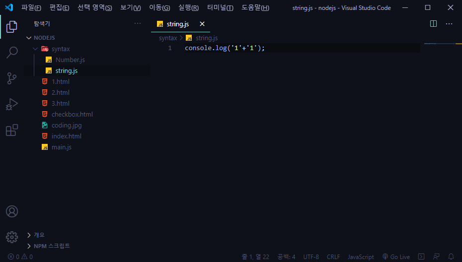 | [Node.js-์ํ์ฝ๋ฉ] JavaScript ๋ฌธ๋ฒ - Number Data type (0) | 2021.01.25 |
