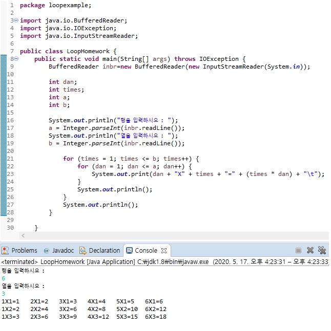 ์ฌํ๋ฌธ์ ) BufferedReader๋ฅผ ์ฌ์ฉํ์ฌ ํ๊ณผ ์ด์ ์ ๋ ฅํ๋ฉด ์๋์ ๊ฐ์ด ์ถ๋ ฅ๋๊ฒ ๋ง๋ค๊ธฐ