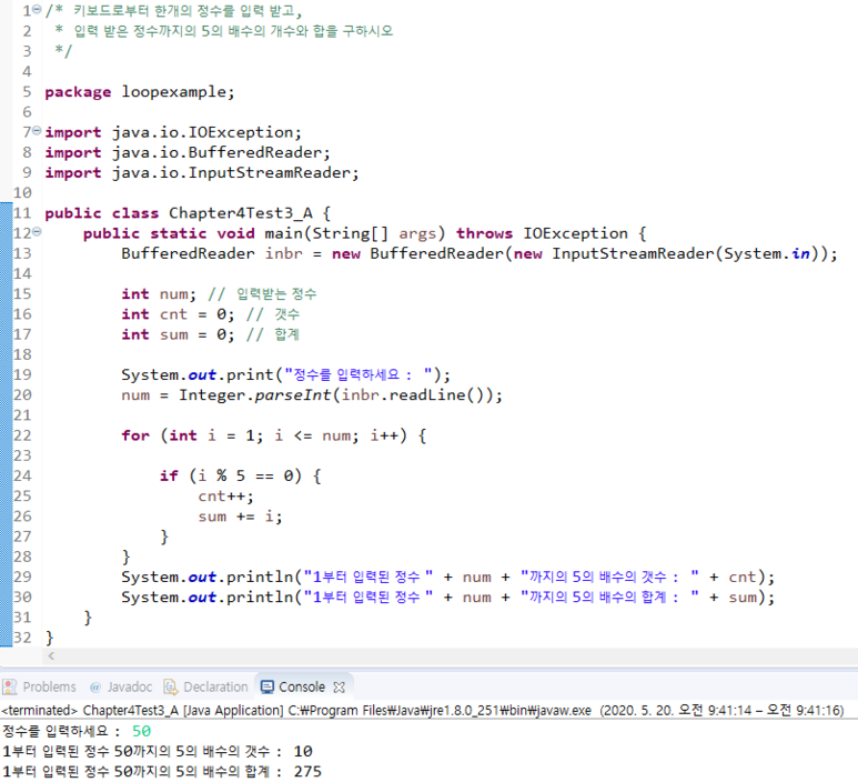 μ¬νλ¬Έμ 1) ν€λ³΄λλ‘λΆν° νκ°μ μ μλ₯Ό μ λ ₯ λ°κ³ , μ λ ₯ λ°μ μ μκΉμ§μ 5μ λ°°μμ κ°μμ ν©μ ꡬνμμ€.