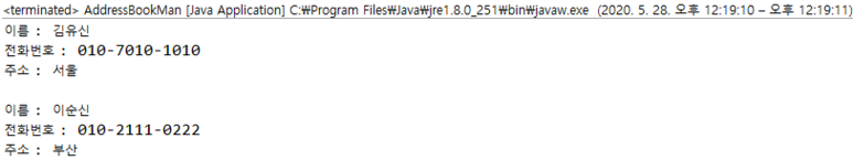 ์ค์ต 1) AddressBook + AddressBookMan ํด๋์ค ์์ฑ