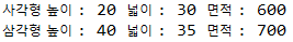 ์ค์ต 2) ์ผ๊ฐํ๊ณผ ์ฌ๊ฐํ์ ๋์ด, ๋์ด, ๋ฉด์ ๊ฐ ์ถ๋ ฅํ๊ธฐ