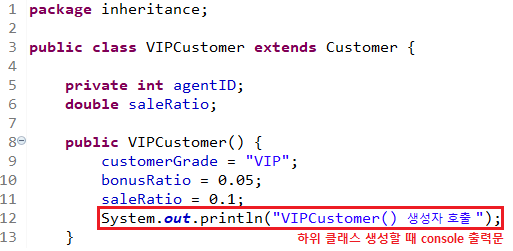VIPCustomer customerKim = new VIPCustomer(); // ํ์ ํด๋์ค ์์ฑ