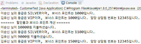 System.out.println(customerKim.getCustomerName() + " λμ΄ " + kimPrice + "μ μ§λΆνμ