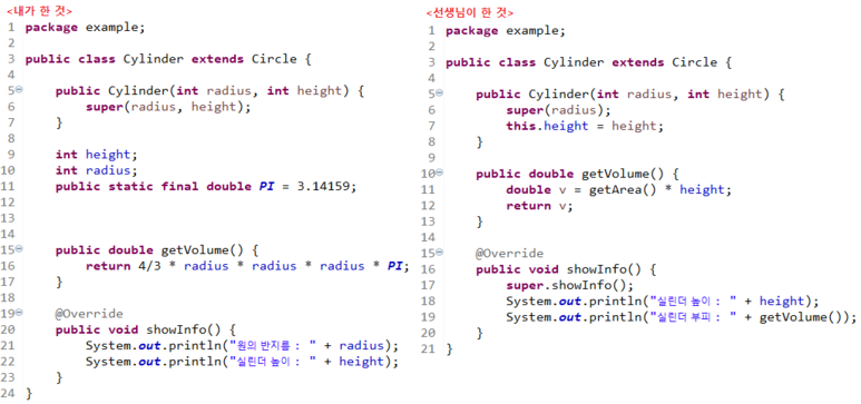 μ¬νλ¬Έμ ) μ¬κΈ°μ Cylinder ν΄λμ€λ₯Ό μΆκ°ν΄μ μμ λΆνΌλ₯Ό ꡬνμμ€.