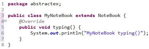 ๊ทธ๋ฌ๋ฏ๋ก NoteBook ํด๋์ค๋ ์ถ์ ๋ฉ์๋๋ฅผ ํ๋ ๊ฐ์ง๊ณ ์๊ธฐ ๋๋ฌธ์ ์ถ์ ํด๋์ค๊ฐ ๋๋ค.