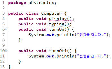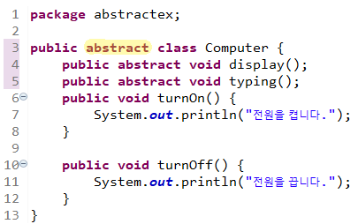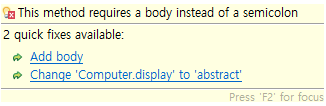 ์ด ๋ ์ค ํ๋์ธ๋ฐ, ์ฐ๋ฆฌ๋ abstract ์์ฝ์ด๋ฅผ ๋ฐฐ์ฐ๊ณ ์์ผ๋๊น abstract๋ฅผ ์ ๋ ฅํด๋ณธ๋ค.