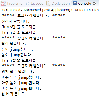 System.out.println("๋์ด jump ํฉ๋๋ค.");