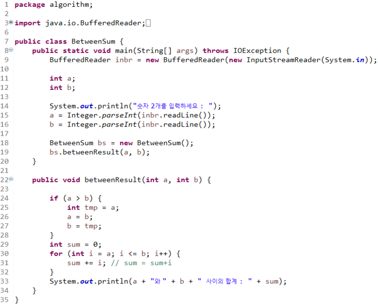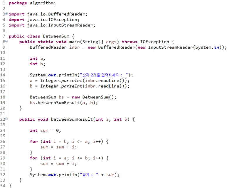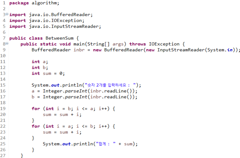 Q2) ์ซ์ 2๊ฐ๋ฅผ ์ ๋ ฅ๋ฐ์์ ๋ ์ซ์ ์ฌ์ด์ ์ซ์๋ค์ ํฉ์ ์ถ๋ ฅํ์์ค.