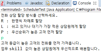 System.out.println("P : ์ฐ์ ์์๊ฐ ๋์ ๊ณ ๊ฐ ๋จผ์ ํ ๋น ");