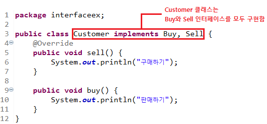 Buy buyer = customer; // Customer ν΄λμ€νμΈ customerλ₯Ό Buy μΈν°νμ΄μ€νμΈ buyerμ λμ