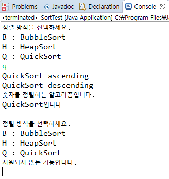 System.out.println("μ λ ¬ λ°©μμ μ ννμΈμ.");