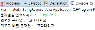 System.out.print("๊ฑฐ๊พธ๋ก ๋ฐ๋ ๋ฌธ์์ด : " + sr.reverse(instr));