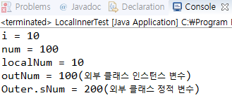 int localNum = 10; // μ§μ λ΄λΆ ν΄λμ€μ μΈμ€ν΄μ€ λ³μ