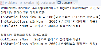 System.out.println("InStaticClass inNum = " + inNum + "(λ΄λΆ ν΄λμ€μ μΈμ€ν΄μ€ λ³μ μ¬μ©)");