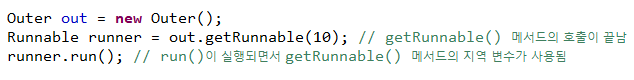 Runnable runner = out.getRunnable(10); // λ©μλ νΈμΆ