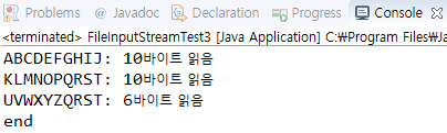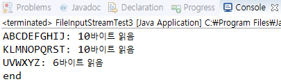 -int read(byte[] b) ๋ฉ์๋๋ก ์ฝ๊ธฐ