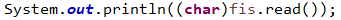 System.out.println((char)fis.read());