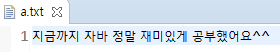 osw.write("์ง๊ธ๊น์ง ์๋ฐ ์ ๋ง ์ฌ๋ฏธ์๊ฒ ๊ณต๋ถํ์ด์^^");