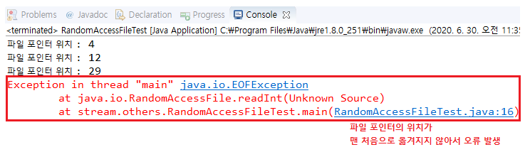 System.out.println("ํ์ผ ํฌ์ธํฐ ์์น : " + rf.getFilePointer());